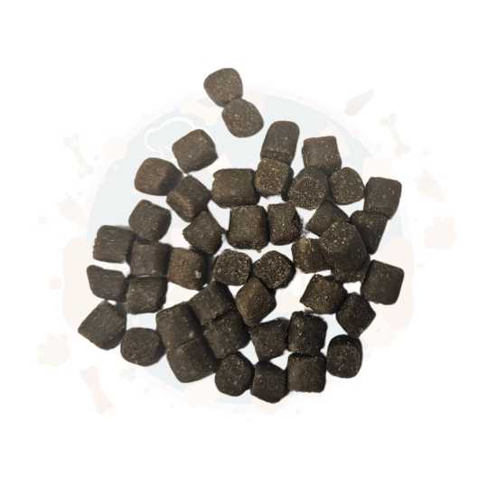 Ingredients: 85% fresh whole fish (sardinella (Sardinella aurita), mackerel (Scomber scombrus), horse mackerel (Trachurus spp.), Sardine (Sardina pilchardus)), 9% hydrolyzed starch, 4% hydrolyzed cartilage, 0.5% eggs, 0.5% Beta Vulgaris pulp, 0.125% brewer’s yeast (Saccharomyces cerevisiae), 0.125% pumpkin, 0.125% pear, 0.125% pineapple, 0.125% thyme (Thymus vulgaris), 0.125% coriander (Coriandrum sativum), 0.125% cumin (Cuminum cyminum), 0.125% turmeric (Curcuma longa)
