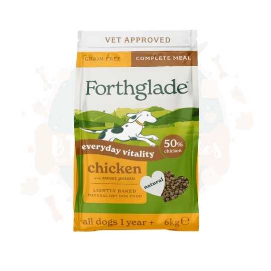 Forthglades lightly baked dry food blends 50% quality chicken with wholesome vegetables, botanicals, added vitamins and minerals to create a naturally nutritious complete meal. Gently baked at lower temperatures to help seal in flavour and retain natural goodness, the grain-free bite-sized pellets are easily digestible and free from junk or artificial fillers. Dogs of all sizes can enjoy this complete, balanced recipe on its own or as a tasty complement to wet food.